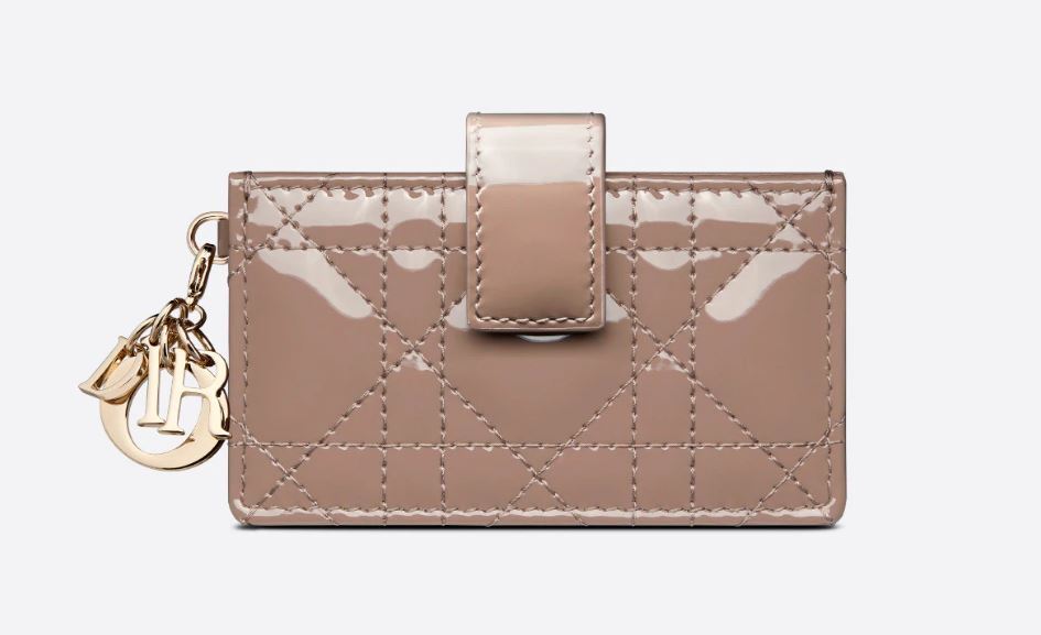 Dior 가죽 장인들의 노하우가 담긴 타임리스 까나쥬 스티칭의 Lady Dior 5-포켓 카드 지갑입니다. 데일리 소지품을 보관할 수 있는 컴팩트하고 실용적인 스타일로 웜 토프 컬러의 페이턴트 송아지 가죽 소재로 제작되었으며 D.I.O.R. 참과 스냅 버튼 플랩 장식이 돋보이며 다양한 Lady Dior 아이템과 매치하기 좋습니다.