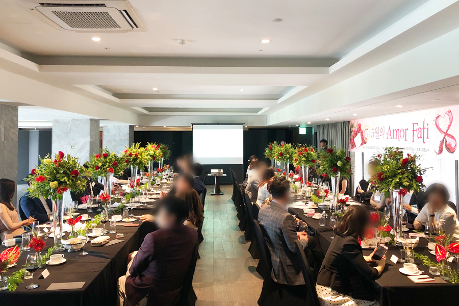 지난 5월 25일 '반얀트리 클럽 앤 스파 서울에서 40대 재혼을 희망하는 돌싱 40명이 참석한 가운데 재혼파티 '5월의 Amor Fati'가 성황리에 개최되었습니다. 지난 1편에는 파티의 전체적인 분위기를 보여드렸다면 오늘 이 시간에는 파티를 즐기는 퍼플스 회원님들의 모습을 생생하게 전해드리겠습니다.