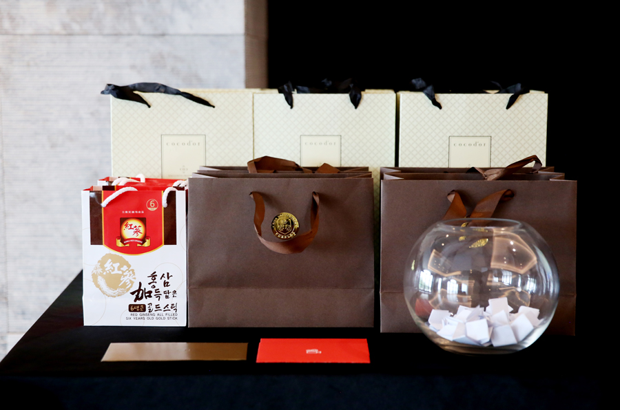 식사가 끝나 갈 즘에, 행운권 추첨이 있었습니다. 상품으로는 백화점 상품권, 정관장 홍삼 스틱, 디퓨저, 도서, 차량용 가습기, CGV 영화예매권 등 푸짐하게 준비되었습니다.