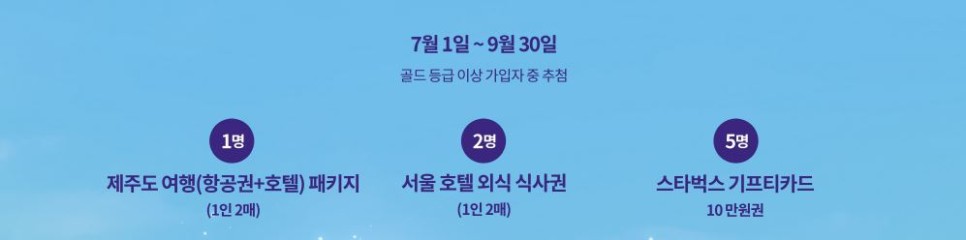 이벤트 기간은 7월 1일부터 9월 30일까지로, 결혼정보사이트 퍼플스 전국지사의 골드 등급 이상 정회원 가입자를 대상으로 합니다. 별도의 신청 절차가 없기 때문에 이벤트 기간 내에 퍼플스 골드 등급 이상 가입자라면 자동으로 신청이 완료되며, 10월 1일 추첨을 통해 항공권과 호텔이 포함된 제주도 패키지여행권(1명)과 서울 호텔 외식 식사권(2명), 스타벅스 기프트카드 10만 원권(5명)이 증정됩니다.