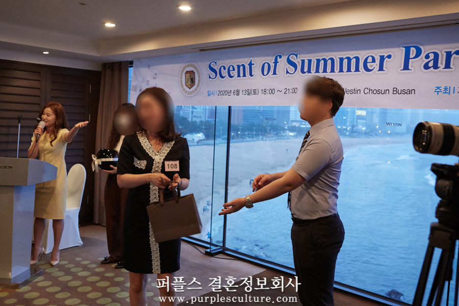 지난 6월 13일, 웨스틴 조선호텔 부산에서 부산, 울산, 대구 등에 거주 중인 결혼 적령기 회원들을 대상으로 대구 직장인 소개팅 파티 "Scent of Summer"가 성황리게 개최되었습니다. 지난 1편에는 파티의 전체적인 분위기를 보여드렸다면 오늘 이 시간에는 파티를 즐기는 퍼플스 회원님들의 모습을 생생하게 전해드리겠습니다.