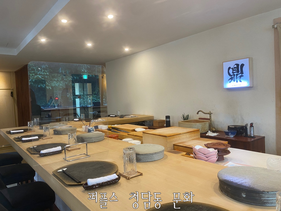 '스시카나에'는 런치 1부, 2부와 디너 1부, 2부로 나눠져 있으며 시간 당 12명의 손님만 받고 있습니다. 퍼플스 청담동 문화는 런치 1부에 방문하였는데 여유있게 방문했음에도 정갈하게 정리된 테이블이 준비되어 있었으며, 고즈넉한 분위기로 인해 기대가 많이 되는 식사였습니다.