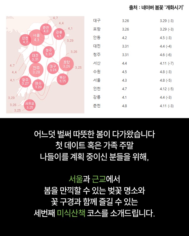 꽃 구경과 함께 즐길 수 있는 미식산책 코스를 소개드립니다.