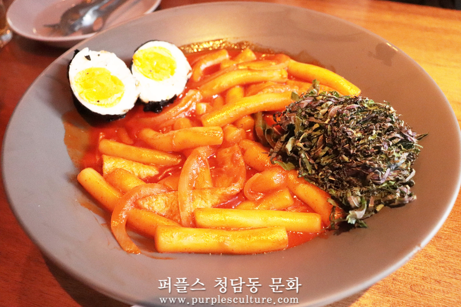 매콤 달달 국물 떡볶이에 까만 달걀, 풍미를 돋구는 깻잎 슬라이스까지 올려진 메뉴입니다. 치킨 맛집으로 알려진 '로켓크리스피 치킨'이지만 떡볶이 또한 일품으로 떡볶이 맛집이라고 해도 믿을만한 맛이었습니다.