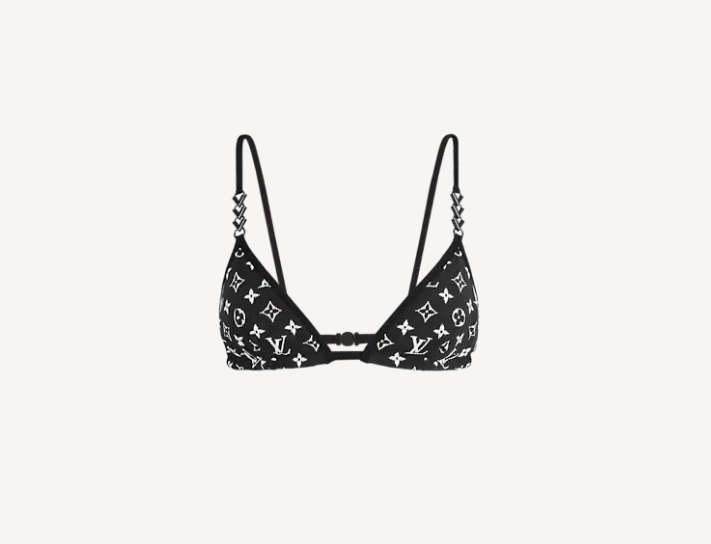 루이비통 특유의 모노그램이 프린트된 삼각 비키니입니다. 매우 기본적인 디자인의 비키니라고 볼 수 있으나, 주얼리로 장식된 스트랩과 루이비통만의 고급스러운 프린트가 포인트 되어 심플하면서도 화려한 느낌을 줍니다. 이외에도 루이비통은 다양한 쉐입의 스윔슈트가 마련되어 있어 체형을 보완할 수 있는 비키니를 쉽게 찾으실 수 있습니다.