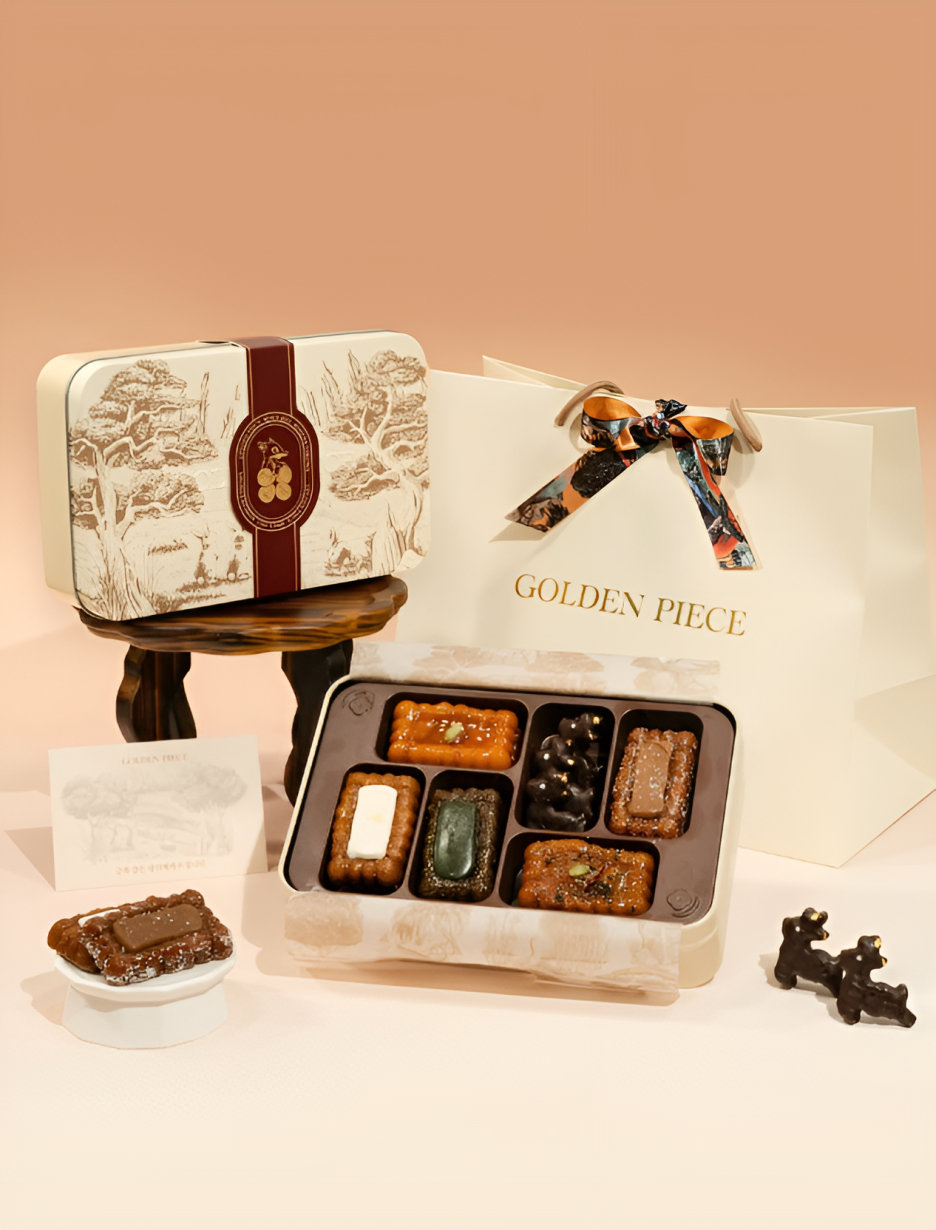 GOLDEN PIECE는 한국 전통 과자를 현대적으로 재해석하여 만든 프리미엄 약과 브랜드입니다.