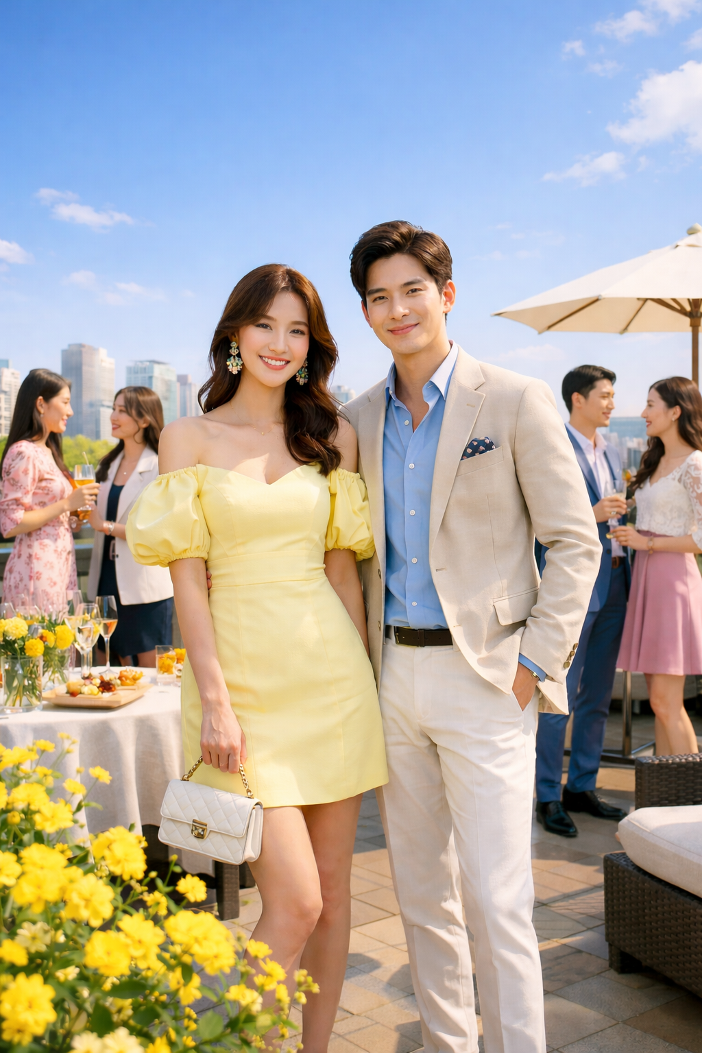 푸른 하늘과 노란 꽃들이 어우러진 루프탑에서 여러분의 스타일은 더욱 돋보일 것입니다.