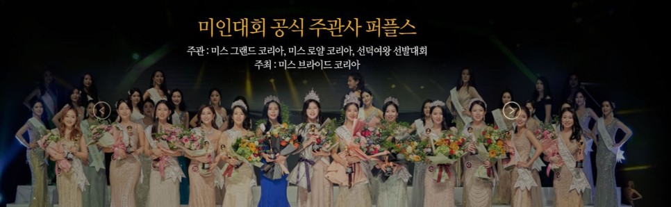 '2020 선덕여왕 선발대회'의 공식 주최사인 결혼정보회사 퍼플스는 VIP 회원들의 성혼 서비스를 제공하는 상류층 결혼정보회사로 수많은 미인대회를 주최해오고 수상자들과 아나운서, 영화배우, 프로모델분들의 성혼에 도움을 드리고 있습니다. 또한, 퍼플스 김현중 대표는 미스코리아 심사위원, 월드미스 유니버시티 심사위원 그리고 미스그린코리아 조직 위원회 부회장 그리고 2019, 2020 세종대왕 소헌왕후 선발대회 조직 위원회 회장을 역임하여 다양한 국내 미인대회를 선도하고 있습니다.