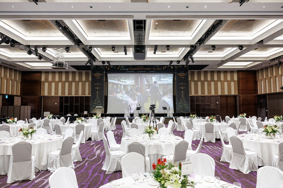 12월의 퍼플스 파티는 연말과 크리스마스 분위기를 함께 담아낸 것이 특징입니다. 이번 연말파티는 레드와 화이트의 조화를 중심으로 한 센터피스로 공간을 깔끔하고 세련되게 연출해 입장과 동시에 연말 특유의 따뜻한 무드를 느낄 수 있도록 구성했습니다. 과하지 않으면서도 단정한 테이블 장식과 전체적인 동선을 고려한 공간 배치는 많은 인원이 함께하는 대규모 파티임에도 차분하고 안정적인 분위기를 유지하는 데 중요한 역할을 했습니다.